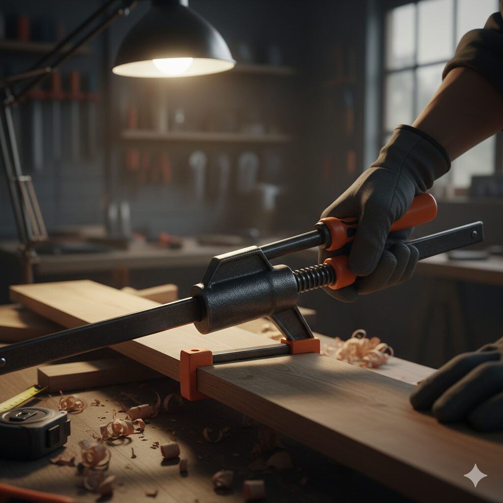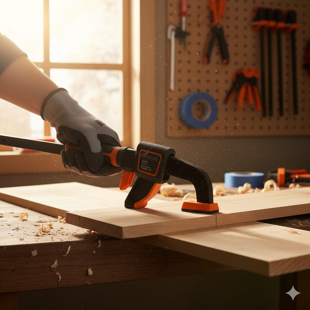 - 中程度の固定(板材の接着など):F型クランプやC型クランプが適しています。