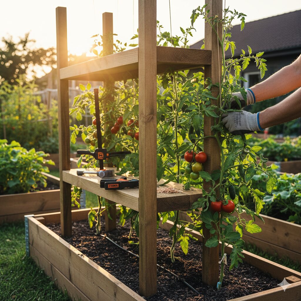 事例①:家庭菜園での頑丈な棚作り