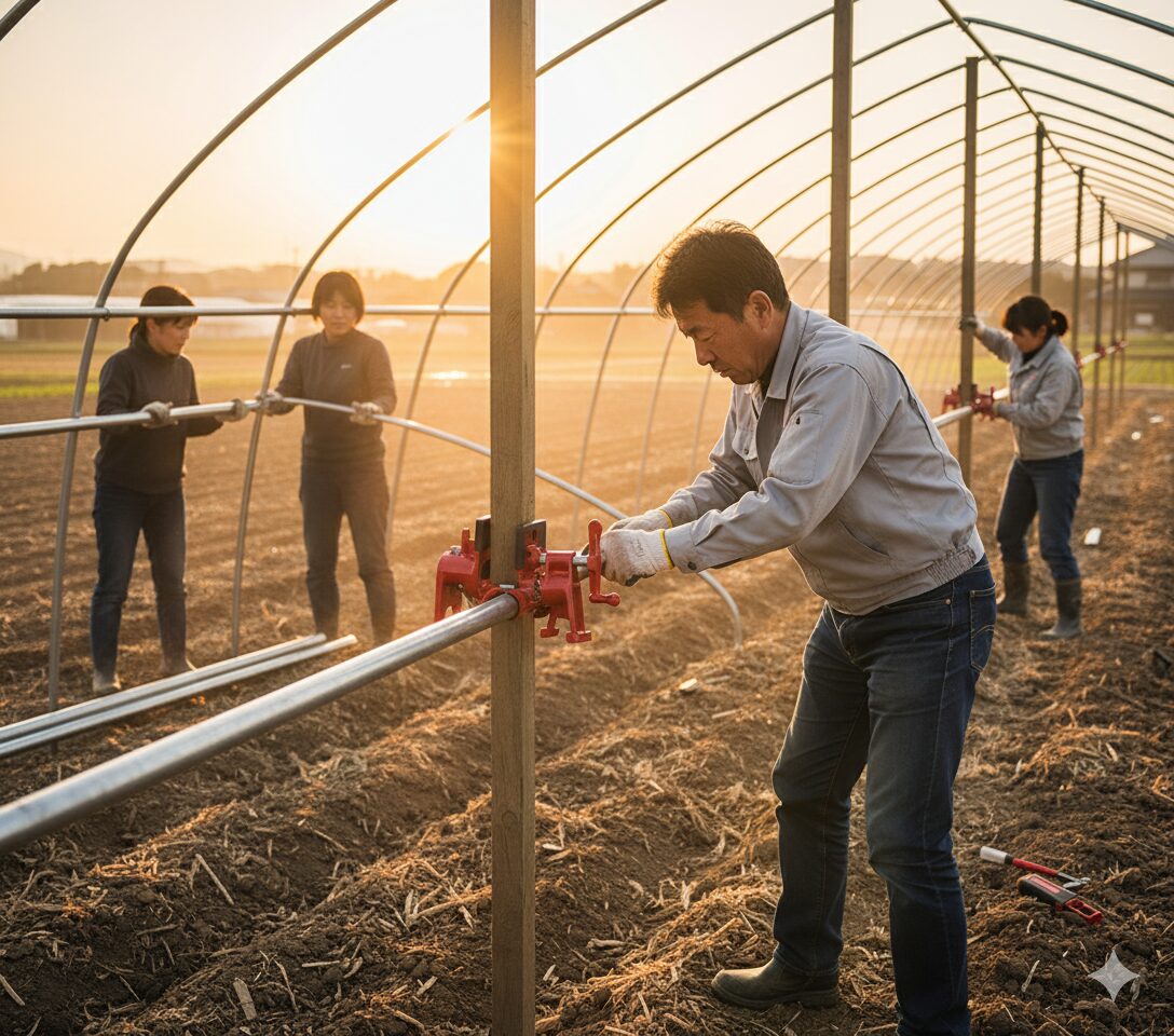 畑で大型のビニールハウスを設営する際、複数の支柱を正確な間隔でまっすぐ固定する必要がありました。ここで大活躍したのがパイプクランプです。市販の単管パイプを連結し、長い直線上に複数の支柱をまとめて固定することで、ズレなく効率的に作業を進められました。大規模な作業ほど、クランプによる仮固定の威力を実感しますね。